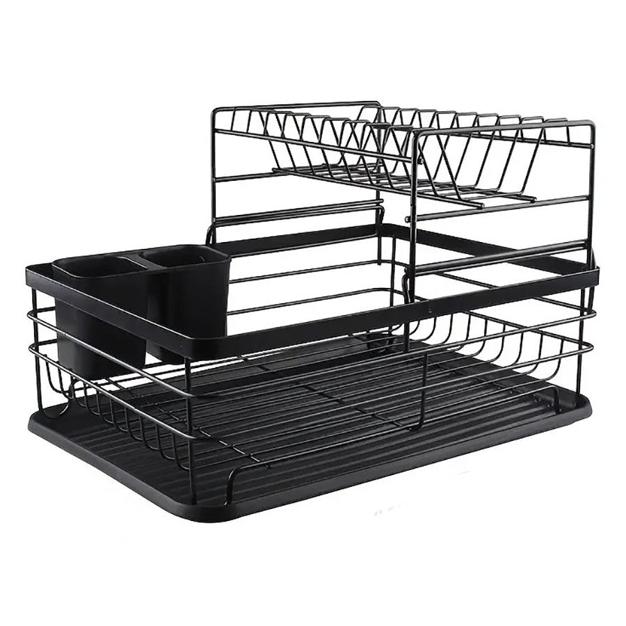 Μεταλλική πιατοθήκη 2 επιπέδων με σχάρα πιάτων,θήκη μαχαιροπήρουνων και δίσκο αποστράγγισης.σε μαύρο χρώμα.