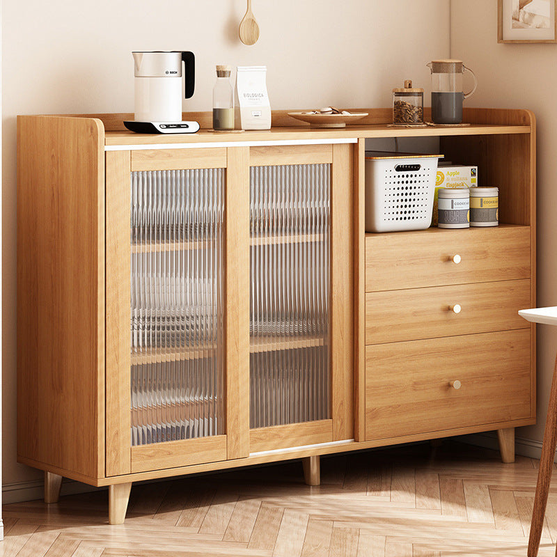 Μοντέρνος ξύλινος μπουφές σε φυσική απόχρωση με τεχνητή παλαίωση με 2 συρόμενα ντουλάπια και 3 συρτάρια.