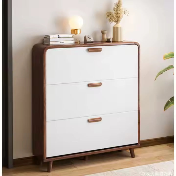 Μοντέρνο έπιπλο παπουτσοθήκη ξύλινη με τεχνητή παλαίωση σε καρυδί-λευκή απόχρωση.