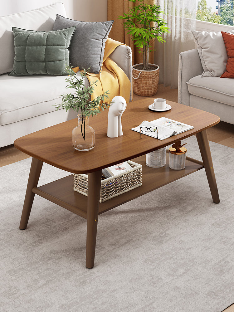 Μοντέρνο βοηθητικό τραπεζάκι σαλονιού με ξύλινη επιφάνεια και βάση τεχνητής παλαίωσης σε καρυδί απόχρωση.