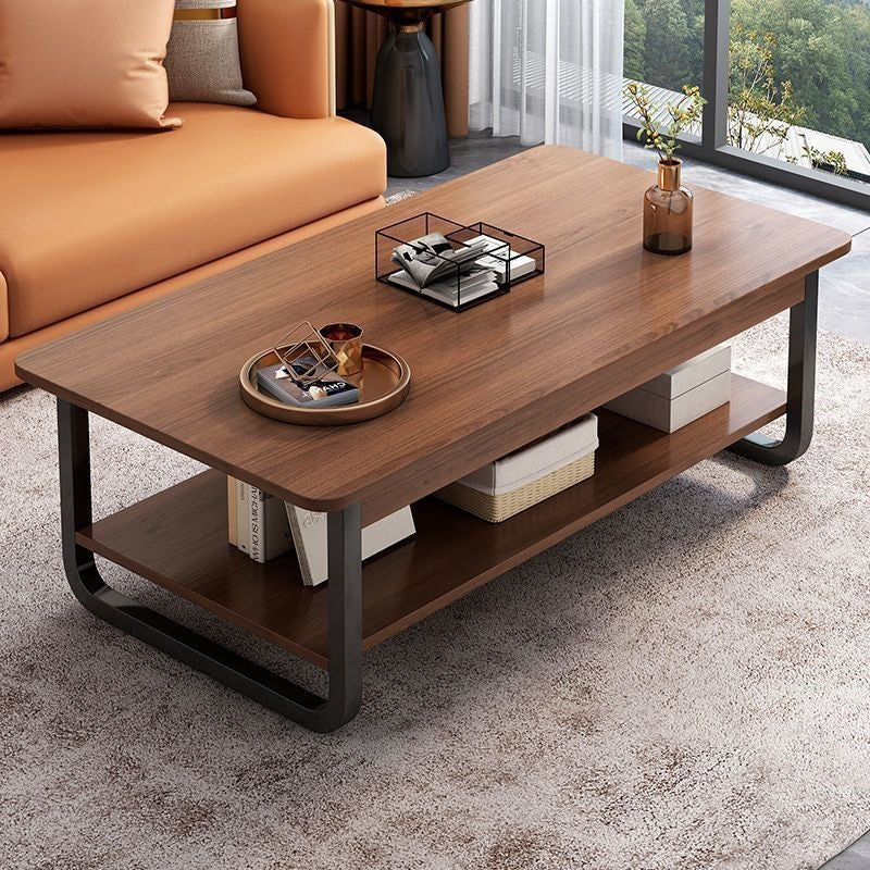 Μοντέρνο βοηθητικό τραπεζάκι σαλονιού με ξύλινη επιφάνεια και βάση τεχνητής παλαίωσης σε καρυδί χρώμα.
