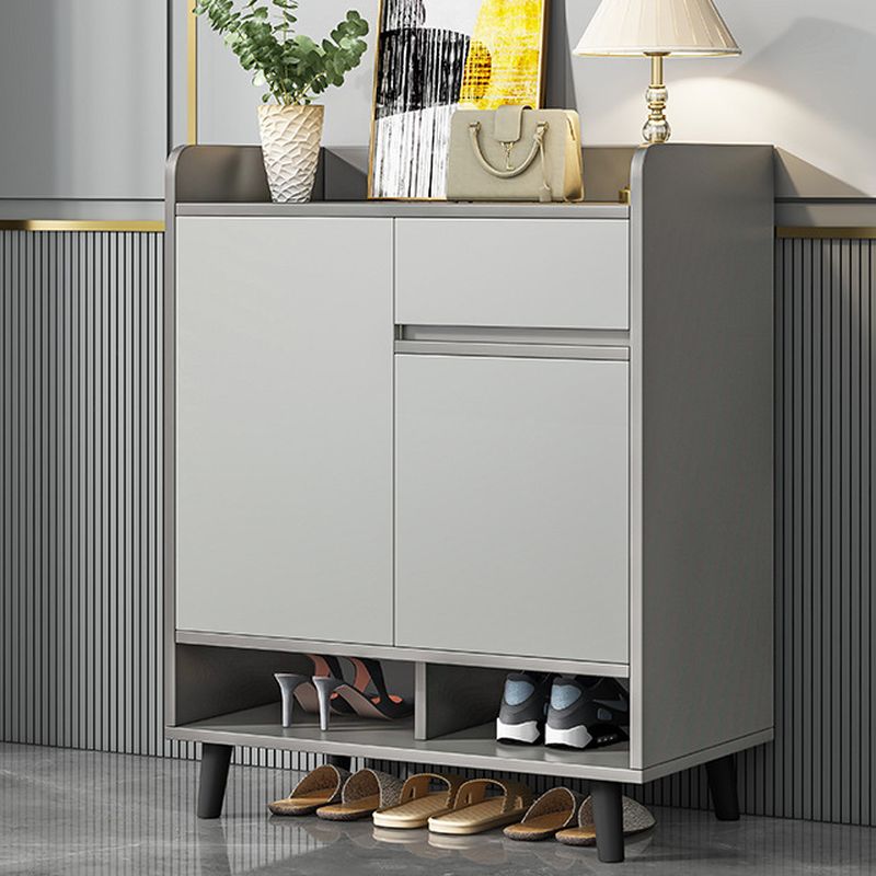 Έπιπλο παπουτσοθήκη ξύλινη σε σκούρο γκρι -λευκή απόχρωση.