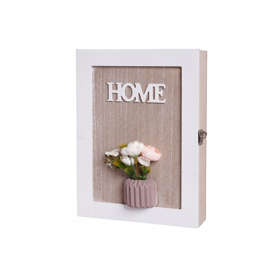 Ξύλινη ανοιγόμενη κλειδοθήκη με ανάγλυφη γλάστρα. Διάσταση: 19x5,5x26cm DF-063B